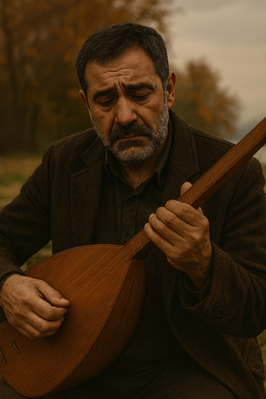 vocal, solo bağlama, slow tempo, deep male vocals, traditional anatolian türkü vibe with slight reverb, heartfelt, tone, slow, emotional, raw, deep, folk, melancholic