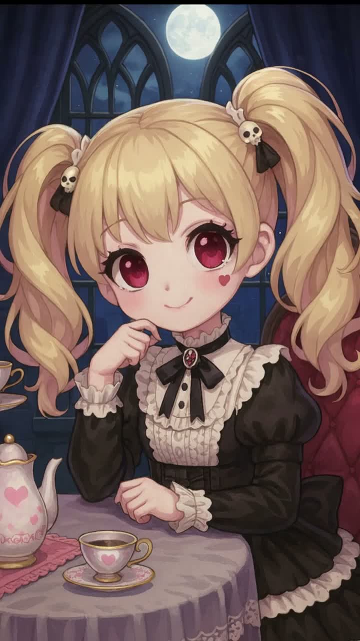 death metal x kawaii, pipe organ, celestial choir, distorted guitars, blast beats, eerie waltz, dramatic shifts, ethereal to growling female vocals, cinematic