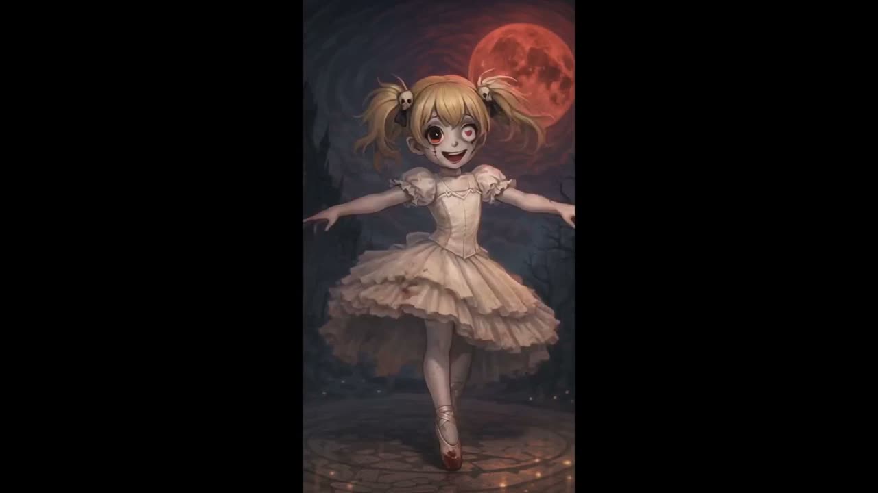 Balletcore × Kawaii Gothic Metal, Dark Balletcore metal, mid-tempo (90–110 BPM), grand piano-led classical waltz with delicate legato, contrasted by sudden distorted guitars and deathcore-style breakdowns, Instrumentation: piano (lead), orchestral strings, distorted guitars, bass, drums shifting from waltz groove to double-kick bursts, subtle celesta/music box, Vocals: soft, breathy, childlike female vocals switching abruptly to growls/screams, layered “la la la” choir, cute vs brutal call-and-response, Mood: cute but disturbing, playful violence, innocent madness, gothic fairytale horror, “smiling while breaking things”, Dynamics: quiet piano → explosive full band, sudden silence drops, unstable waltz flow, rising intensity, Texture: clean-to-distorted contrast, eerie reverb, intimate verses, wide cinematic chorus, Theme: breaking false elegance, hidden rebellion, twisted ballet performance