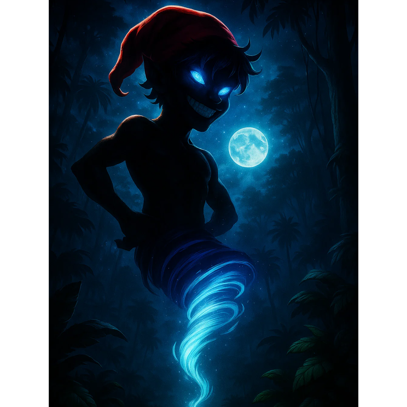 Maracatu, macumba, tambor, Horror Brazil, Dark Folk, 120bpm, energetic guitar, Leather percussion, Haunting tremolo electric guitar, Heavy acoustic zabumba, demonic laughter, whirlwind sound effects, distant gallop; Mood: Ominous, mystical, dangerous, ritualistic, haunting folk horror, suspenseful, supernatural, authentic, fusion, complex time signatures