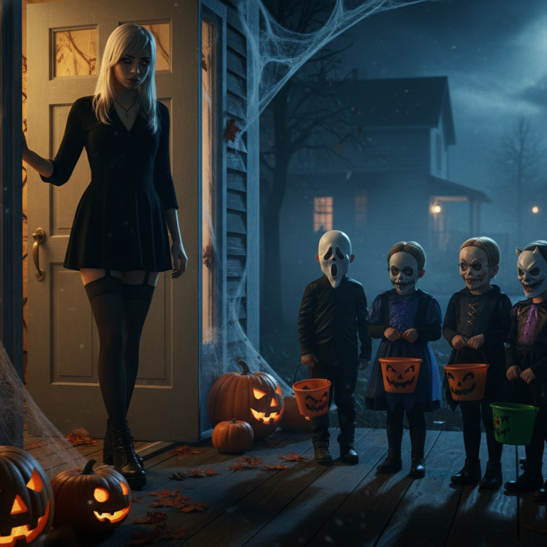 [MOOD: eerie, playful, theatrical, mischievous, cinematic horror-comedy]