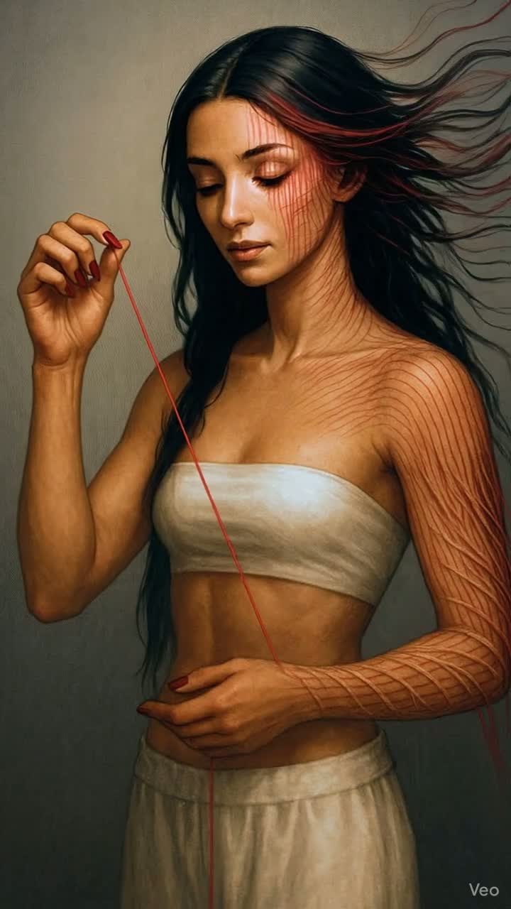 Style: dark cinematic horror / spoken word, Tempo: slow, heartbeat pace (~65 BPM), Voice: creepy scared female vocals, start whispering, end with loud panicked screaming, Mood curve: calm → cracking → panic → silence, Beat: low pulse; stops for tension, FX: reverb grows, distortion creeps in, then hard-cut silence, 19 Hz