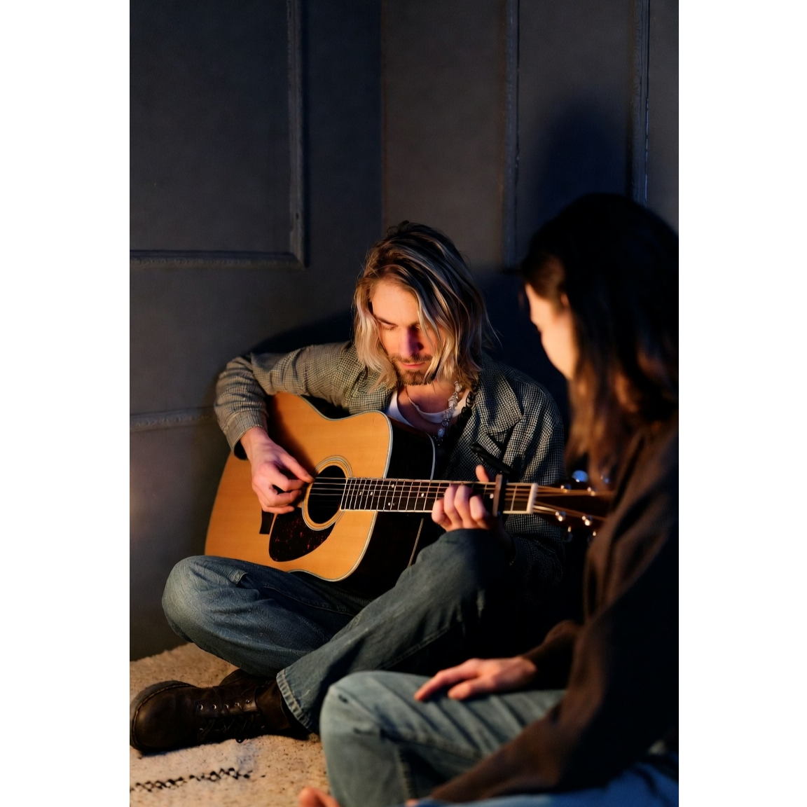 Dark acoustic grunge ballad inspired by Kurt Cobain’s MTV Unplugged, Raw fragile male vocal with breathy cracked tone, intimate and detached, Acoustic guitar in drop D tuning, melancholic fingerpicking with slight detuning and muted percussive hits, Minimal production: voice and guitar only, small room ambience, natural reverb, low fidelity warmth, Tempo: 76 bpm slow and introspective, Key: D minor, Mood: haunting, poetic, lonely, Spanish lyrics tell the story of a mysterious “girl” who might be real or a reflection of the singer’s emptiness, Themes: disconnection, illusion, quiet pain, fragile humanity, Performance feels improvised, vulnerable, full of small imperfections, Conveys the raw authenticity, honesty, and eerie beauty of 90s grunge unplugged—like a private confession recorded accidentally