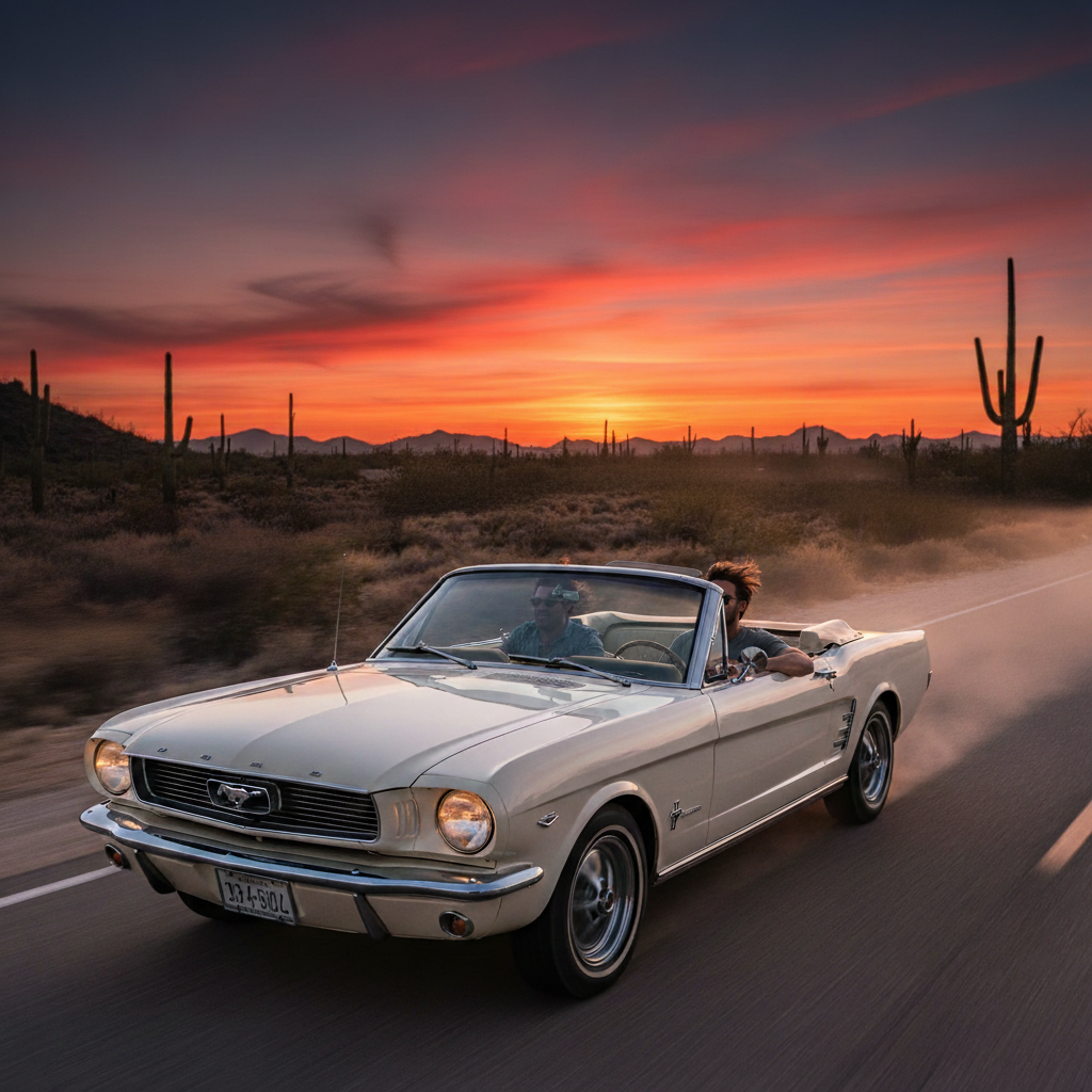 Spanish Rock, Hard Rock and Blues Rock fusion, Dual male vocals: Voice 1 (Fito) warm, nasal, melodic, conversational, Voice 2 (Robe) gritty, raw, expressive, slightly aggressive, Instrumentation: Vintage distorted Les Paul guitar mixed with clean Stratocaster riffs, Hammond organ background, driving bass lines, energetic rock drumming, saxophone accents, Intro: V8 engine sound fading into catchy guitar riff, Structure: Dialogue-style verses, anthemic chorus, Saxophone and Guitar duel solo, Mood: Rebellious, road-trip-style vibe, nostalgic but energetic, "canalla", complicity between friends, Tempo: 130 BPM upbeat rock shuffle, Production: Raw but clear, live band feeling