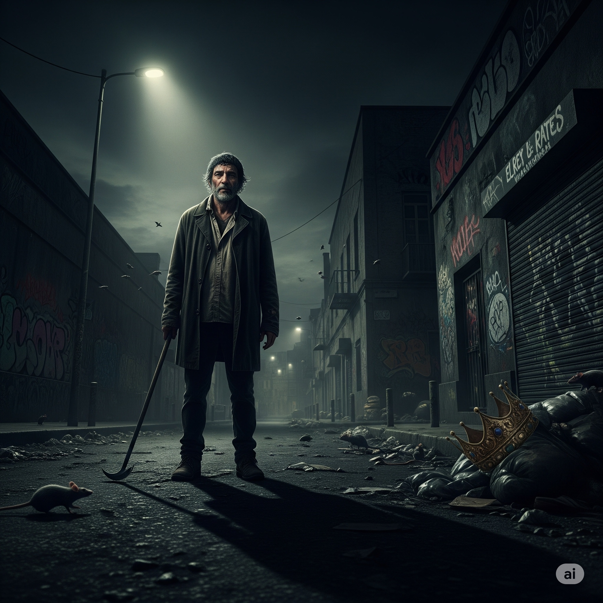 Spanish urban rock ballad with a dramatic and nostalgic vibe, Gritty male vocals with deep emotional tone, similar to classic rock crooners, Intro with soft clean electric guitar, gentle bass, street ambience (city sounds, distant sax), Spanish urban Rock, Symphonic Hard Rock style-Extremoduro, Orchestral Intro building into heavy distortion, Male Vocals: Deep, raspy, breaking with emotion, aggressive yet incredibly poetic, spoken-word sections, Instrumentation: Classical violin mixing with dirty Gibson Les Paul overdrive, complex bass lines, explosive drums with irregular time signatures, Mix: Epic, wide, atmospheric, raw emotion, Tempo: Varies (Begins Slow 75 BPM -> Explodes to 150 BPM), Key: C Minor, Themes: Mortality, rebellion, cosmic chaos, poetic grief