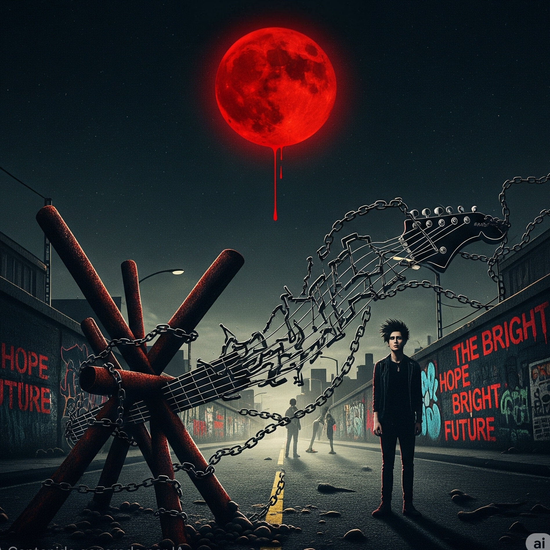 A raw and poetic Spanish rock song in the style-Extremoduro, with a gritty male voice full of emotion and anger, The lyrics are rebellious, existential, and visceral — mixing political rage and street poetry, The music starts slow and melancholic, with distorted guitars playing sorrowful riffs and drums building intensity, At the chorus, the song explodes into a wall of sound, with powerful vocals, fast drums, and aggressive guitar strumming, Includes a dirty, expressive guitar solo around the bridge, then returns to a haunting outro with fading amp noise, The vocals range from whispered sadness to shouted resistance, Inspired by protest songs and anti-establishment energy, Very emotional, with street soul and pure attitude
