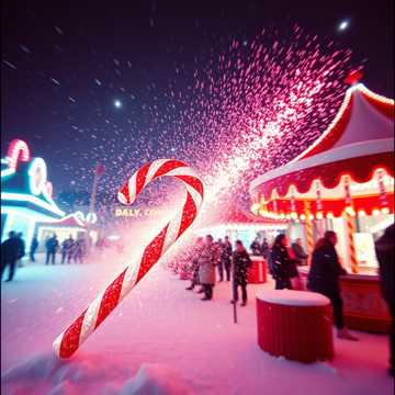High-energy Christmas K-pop / hyperpop song with fast tempo and bouncy electronic drums, bright synth leads, jingle bells, and a punchy bass, Female vocal, confident and playful, with lots of ad-libs and layered harmonies in the chorus, Lyrics about Eva turning a cute candy cane moment into a chaotic sugar-rush disaster: flirting in the snow, tripping over decorations, dropping sweets everywhere but loving the chaos, Big sing-along hook, call-and-response chants, and a super glittery, explosive final chorus, female singer
