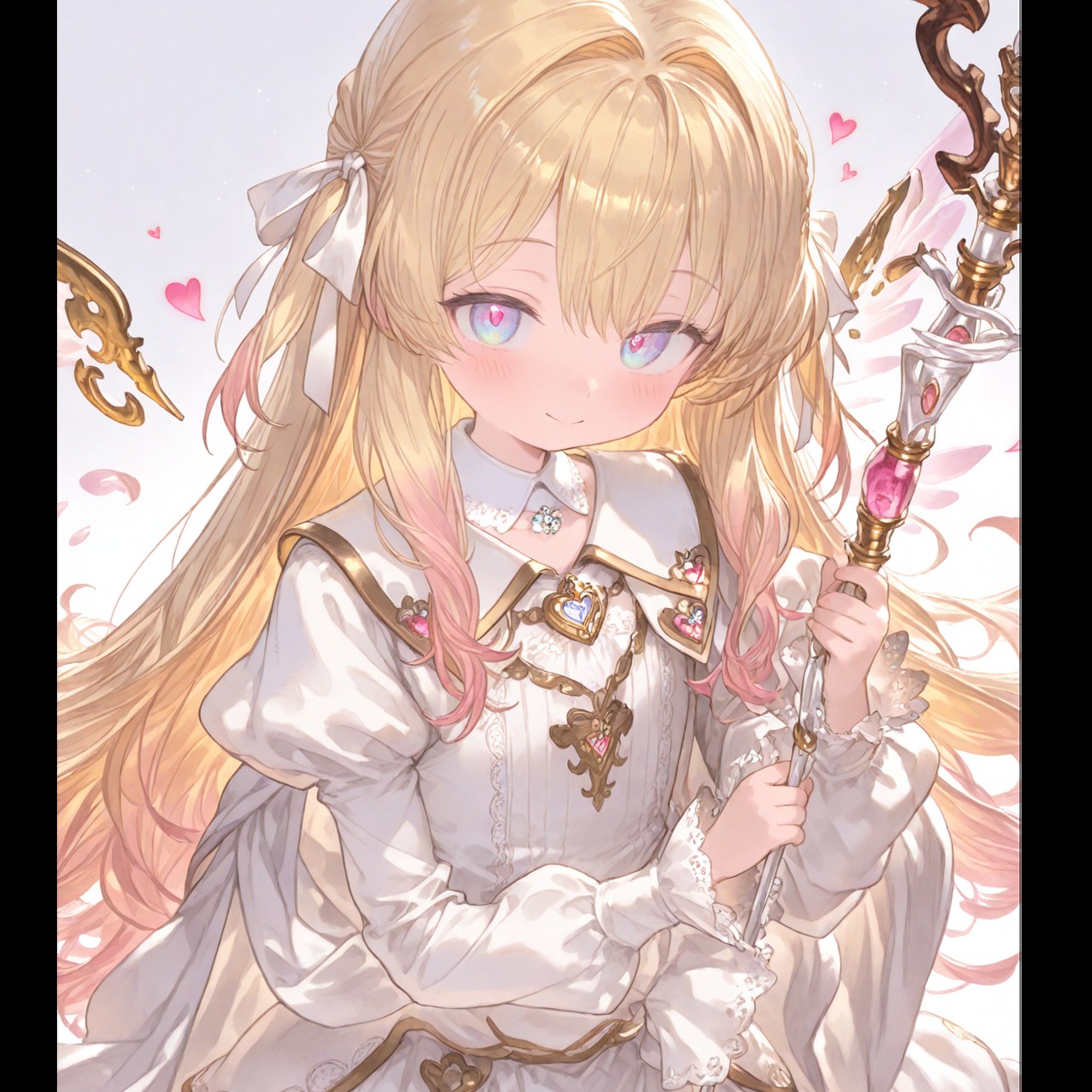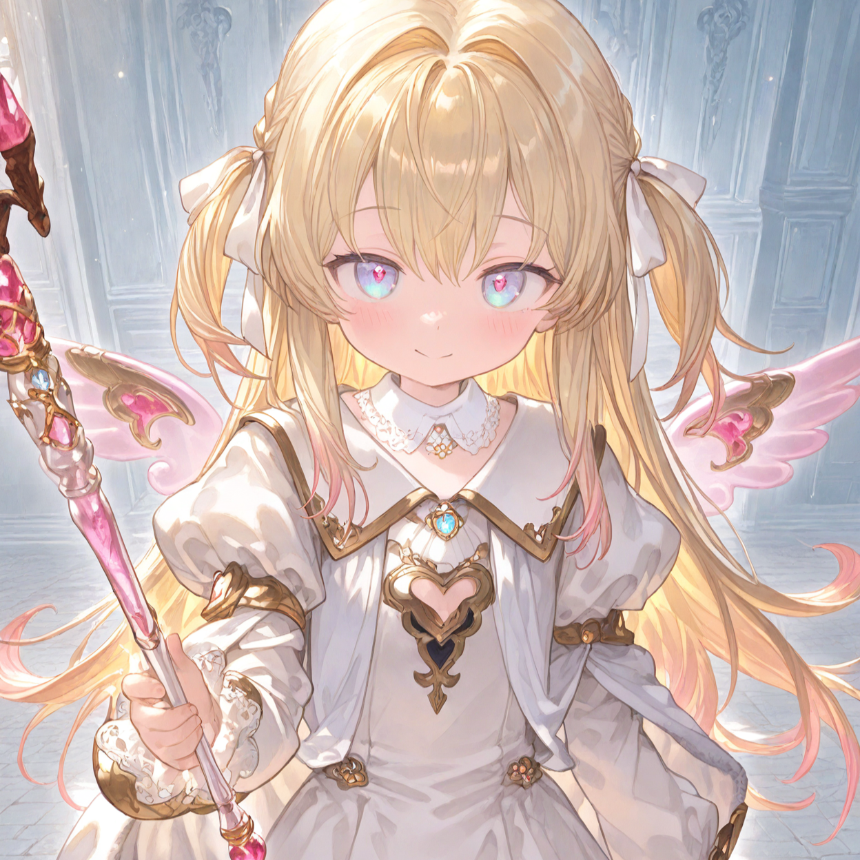 anime character song with magical girl tone, loli voice, high-pitched but soft female vocal, very young and delicate voice, soft and airy vocal texture, rounded and gentle articulation, breathy and restrained delivery, nasally tone, nasal resonance, focused but gentle vocal placement, piano and soft synth arrangement, layered vocals without force, intimate and youthful atmosphere, -mature female vocal, -adult pop vocal, -realistic vocals, -warm vocal