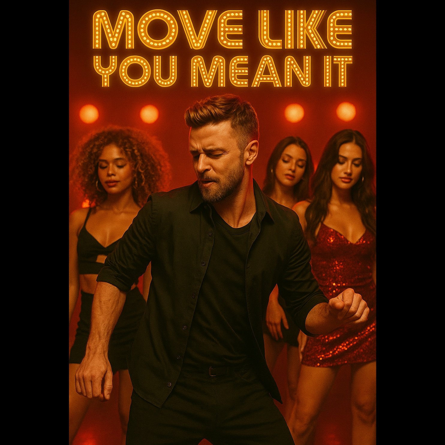 funky male vocal, Justin Timberlake style, beatbox groove, falsetto runs, tight harmonies, pop funk, horn stabs, danceable groove, slick vocal production, layered ad libs, confident swagger, live feel