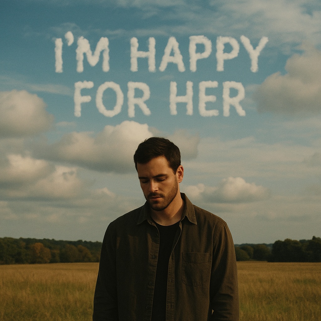 Emotional pop ballad about a man who’s happy that his ex has found someone better for her, He reflects on their past with gratitude, not regret, knowing it wouldn’t have worked out, The tone is bittersweet but mature, quietly proud and deeply vulnerable, Male vocals with a raspy, honest delivery — soft and conversational in the verses, soaring and emotional in the choruses, [Fingerpicked acoustic guitar] drives the track, with [soft ambient pads], [subtle piano], and [light percussion] entering gradually, [Choruses bloom with warm harmonies and gentle strings], then pull back for an intimate [piano-led bridge], [Final chorus swells with full instrumentation], closing with a [guitar outro and whispered vocal line: “I’m happy for her”], [Tempo ~75 BPM], Avoid overproduction — let the emotion lead