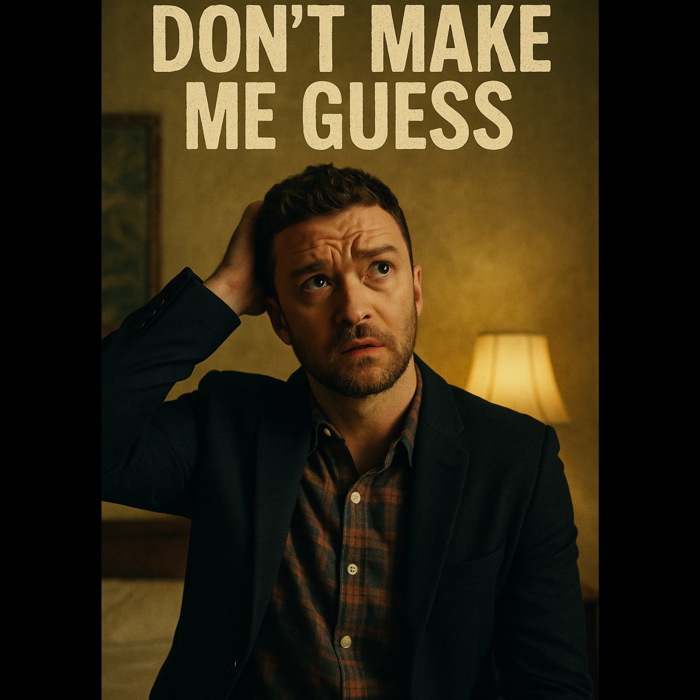 Smooth, modern pop with a blend of bright piano stabs, funky rhythmic guitar, and warm layered synths, Mid-tempo (around 104 BPM) with a catchy, playful vibe and emotional falsetto vocals, Clean production with tight drum patterns and subtle bass groove, Vocals are confident yet tender, featuring melodic vocal runs and harmonies that add texture, The mood is romantic and slightly cheeky, capturing the feeling of unspoken love and hopeful longing, The arrangement builds dynamically from intimate verses to fuller, uplifting choruses with a key change before the final chorus, Perfect for radio-friendly pop with a soulful edge