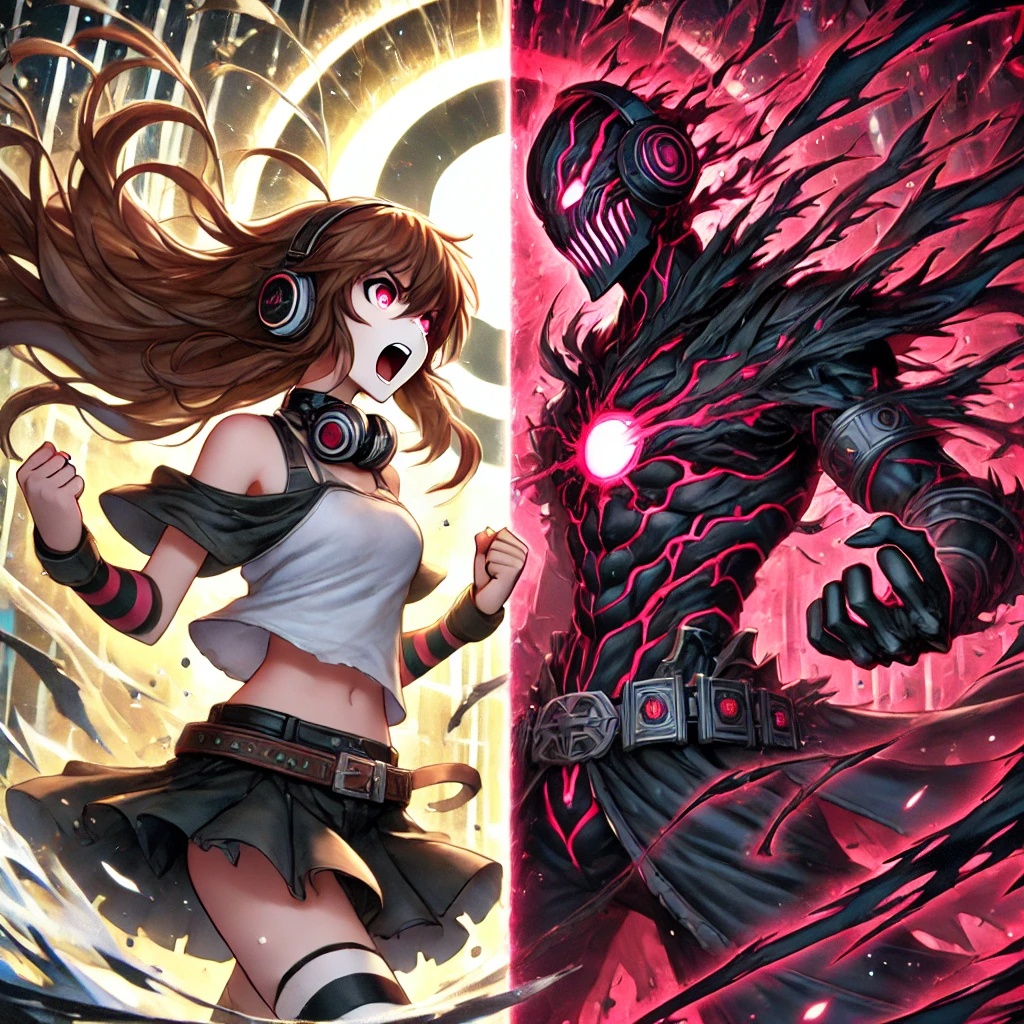 Minor Key, anime battle music, powerful, strong, defiant, sense of hope, sense of hopelessness, final clash, EDM, emotional, intense, climactic, rhythmic, heroic, chaotic, cinematic