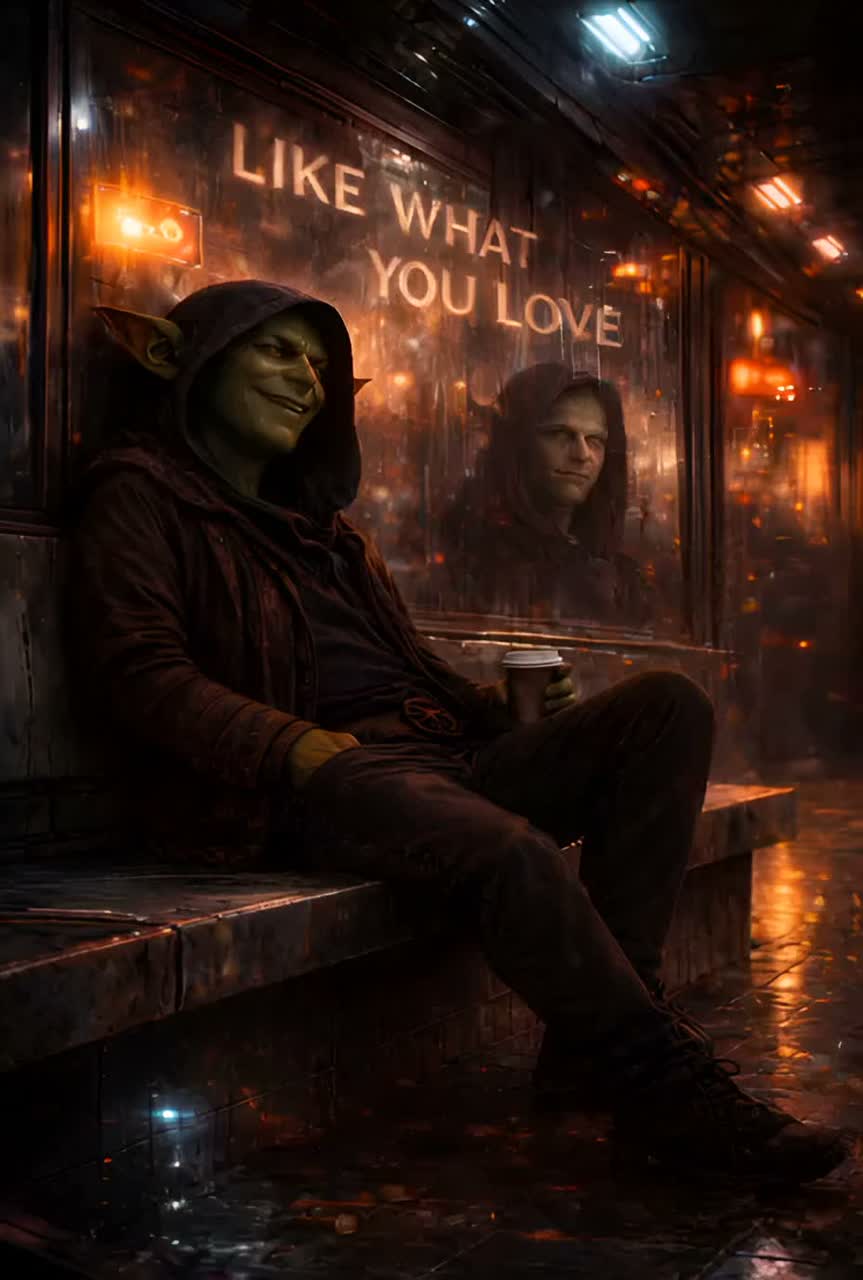 modular synths, panned wide for immersive texture, grounded by deep sub-bass, Ambient layers swell subtly, Vinyl crackle surfaces in the outro as trumpet echoes and a final spoken baritone