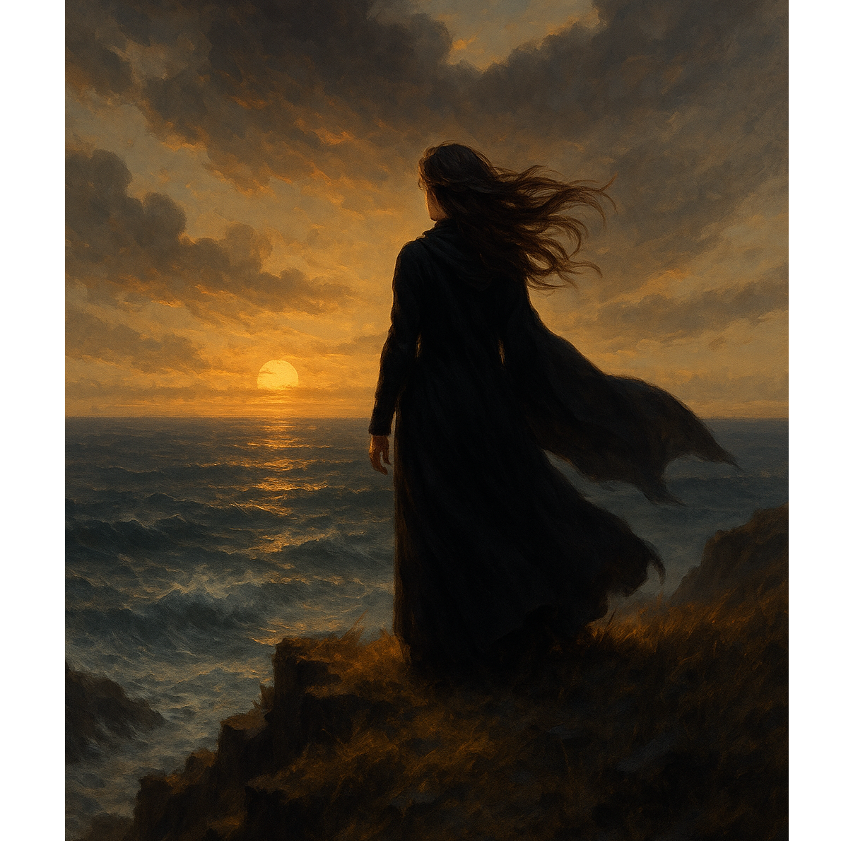 Hypnotic, Northern-myth-inspired rock epic with mid-tempo march groove and dark cinematic feel, Hard rock blended with progressive and psychedelic elements, driven by deep toms, thunderous kick, and droning modal guitar riffs, Male tenor vocals shift from low, resonant storytelling to powerful gritty belts with subtle vibrato, Mood is brooding yet majestic, evoking icy coasts and shadows of forgotten gods, Dynamics move from soft atmospheric passages to explosive crescendos, Mix features wide stereo, lush reverb, and a repeating bassline that builds tension, accented by orchestral swells and heavy percussion for a primal, apocalyptic climax