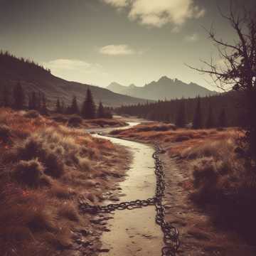 Hard rock, métal industriel, riffs lourds, voix grave, percussions puissantes, atmosphère sombre, énergie brute, synthés industriels, liberté, nature sauvage, revendication