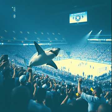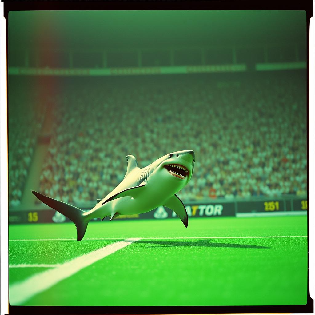 Style: swamp rock / swamp pop / blues cajun, in the vibe of “Stealin’ All Day” (C, C, Adcock & The Lafayette Marquis), Instrumentation: slide electric guitar, groovy bass, slow drum shuffle, light accordion, male and female backing vocals, Mood: lively and soulful southern bar band, but lyrics in English about passion for soccer, Structure: short verses, catchy chorus, bridge reinforcing the shark mascot