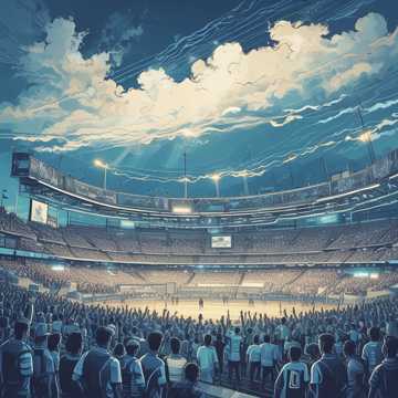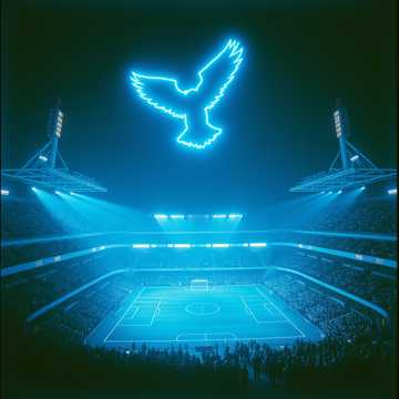 Crie uma música que começa como um hino épico de estádio no estilo "You’ll Never Walk Alone", com órgão, cordas e coral distante, O primeiro parágrafo é falado por uma voz masculina grave e poderosa, como narrador de história de terror num estádio antigo, Depois, exploda em um rock pesado, com bateria marcante, baixo pulsante, guitarras distorcidas e coro de torcida, inclua sons de arquibancada e torcida no refrão, mantenha clima místico e épico, ”
