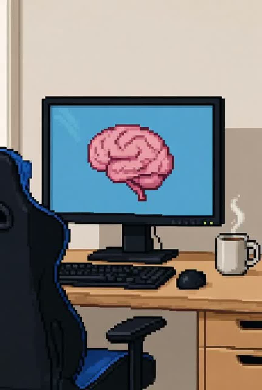 [driving techno pulse, breakbeat bursts, 8-bit leads, arcade bleeps, stutter edits, punchy bass, digital noise accents]