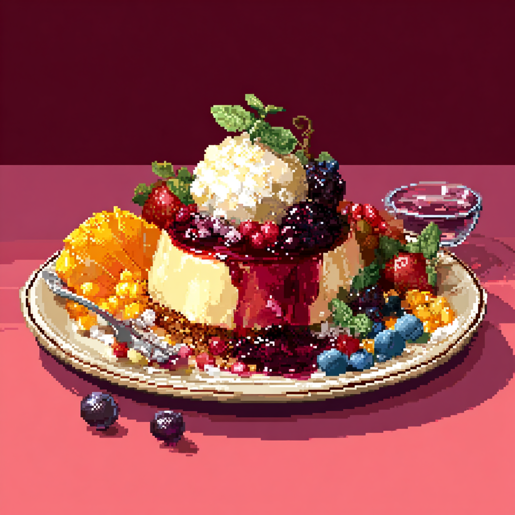 flamboyant atmosphere with vibrant synth leads, pulsating basslines, electronic, and shimmering arpeggios creating a retro-futuristic vibe, chiptune
