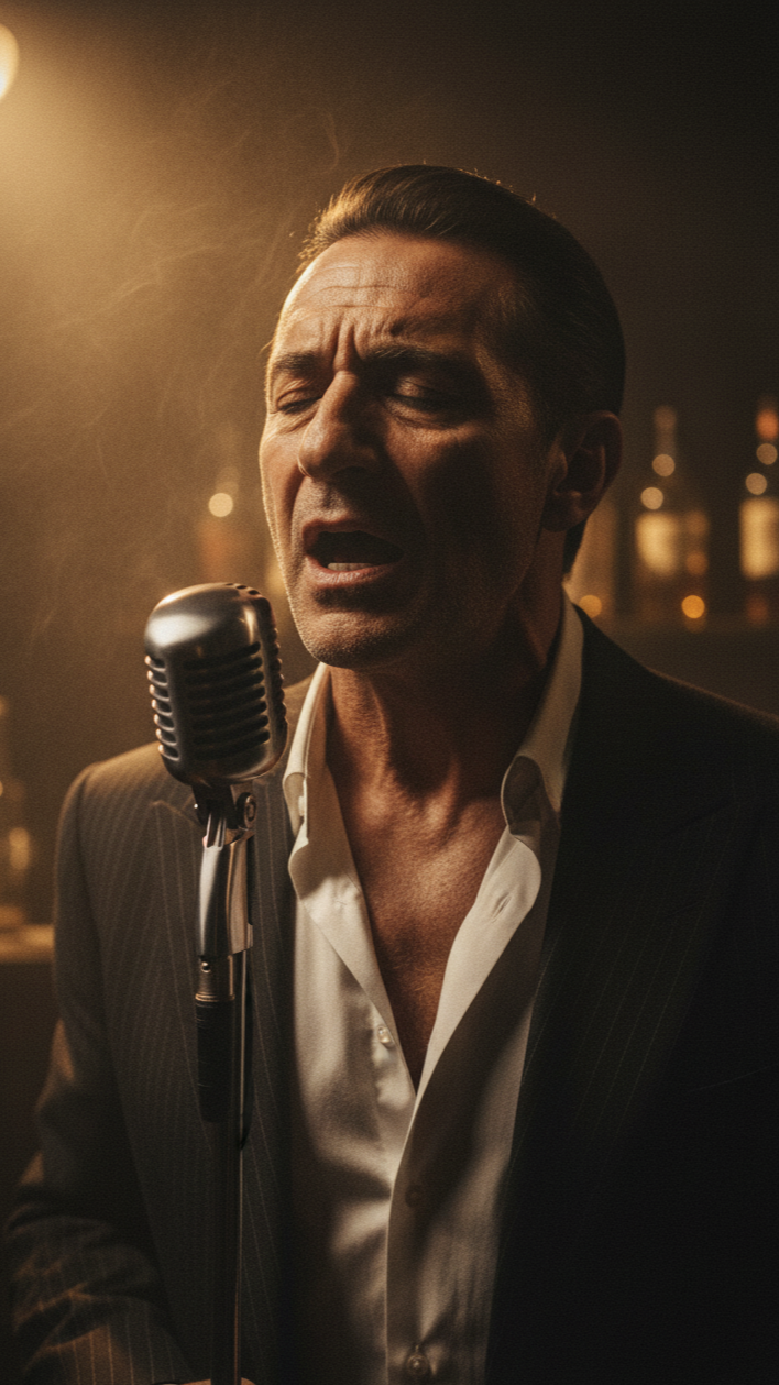 The song unfolds with minimalist piano setting a nocturnal pop tone, deep raspy male vocals delivering intimate spoken word verses, Melodic choruses bloom with expressive saxophone lines, the groove steady but subdued, evoking a melancholic mood throughout the Italian Chanson-inspired arrangement