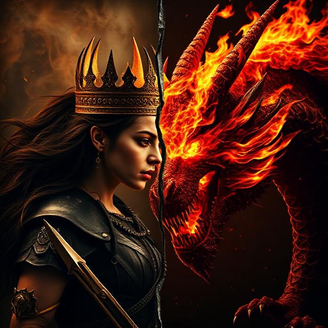 epic rock with grit, commanding female vocal, chugging electric guitars, big tom-driven percussion, dark empowering mood, dramatic build, explosive chorus, fierce warrior energy, strong dynamics, vocals forward and present, guitars supportive but powerful, balanced clear mix, punchy low end, mid-tempo with driving momentum, subtle chant-style post-chorus hook, hand-clap rhythm, stadium feel