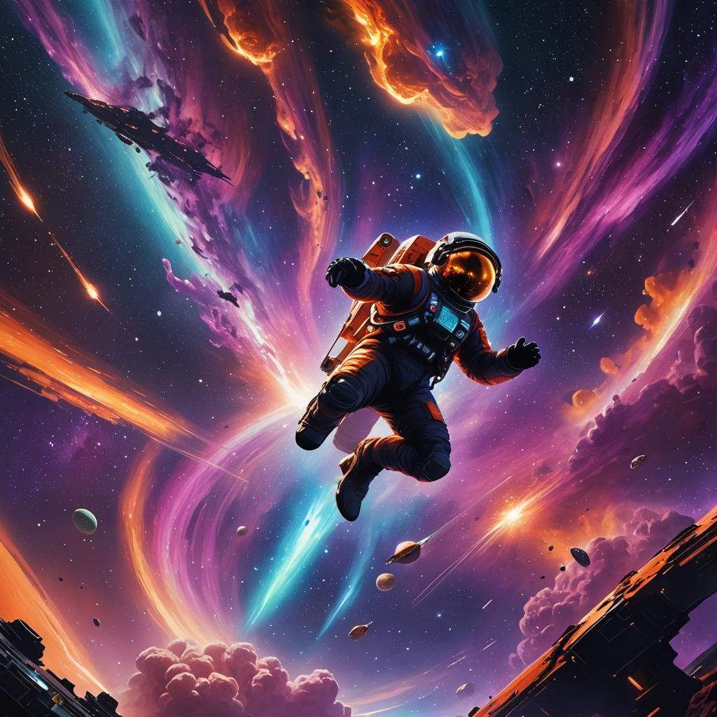 Rap, hollow body guitar, acid breaks, prodigy, experimental, energetic, beat, out of space