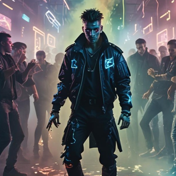 Acid break rriffs, fidget house, distorted guitars, synth prodigy techno, female vocals, bigbeat, electronica-rock, 128bpm