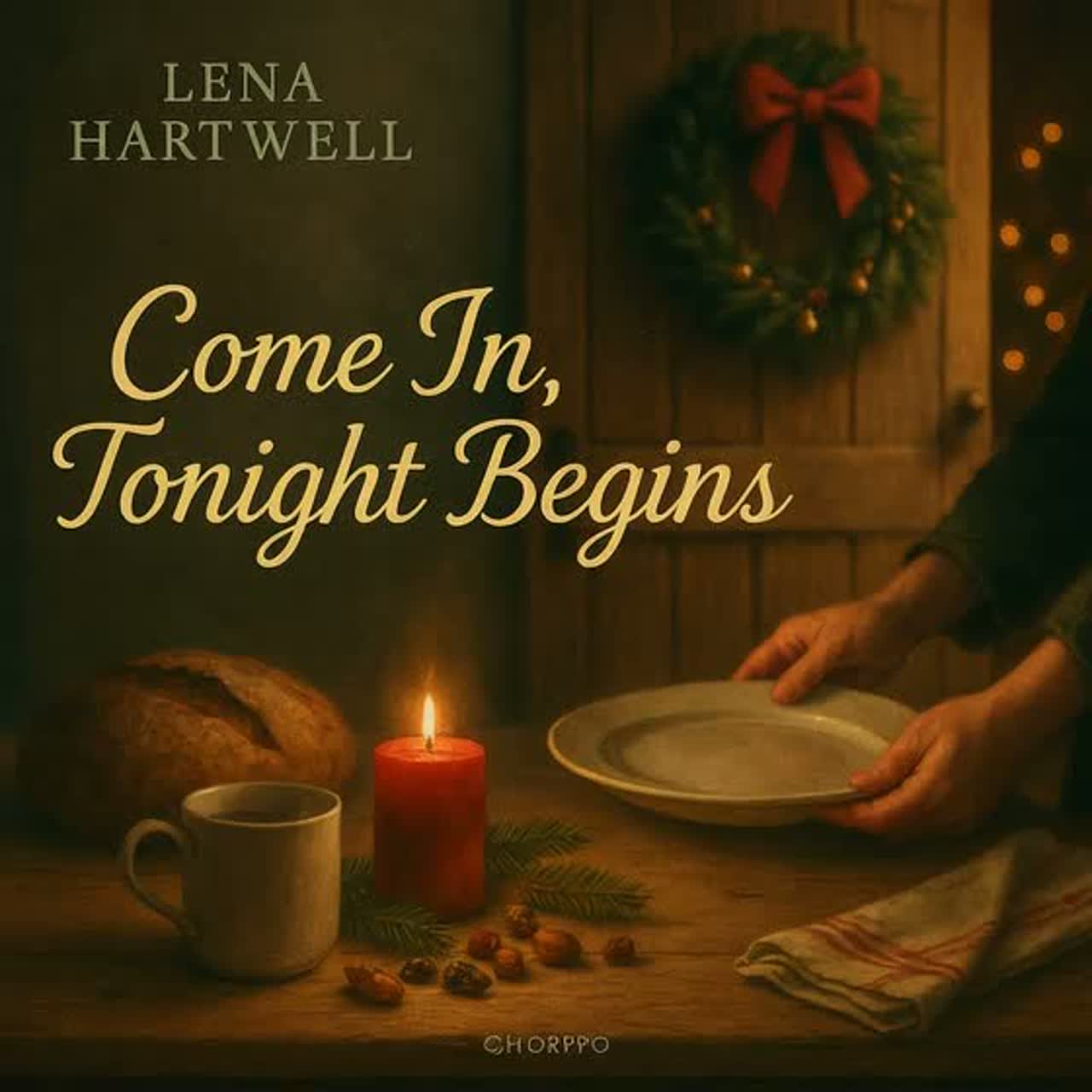 Intimate folk instrumentation centers on fingerpicked acoustic guitar, gently cradled by warm upright bass, Subtle Christmas bells accent each chorus, evoking festive charm, Vocals remain solo and close-miked, enhancing the cozy atmosphere, Sparse hand percussion adds subtle rhythmic life
