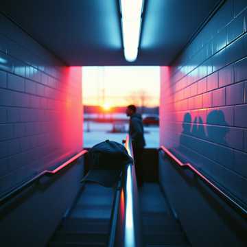 Claustrophobic dark metal, low-frequency resonance, narrow stereo field, echoing footstep percussion, distant scraping sounds, oppressive sub-bass that simulates underground pressure, fear of being hunted unseen