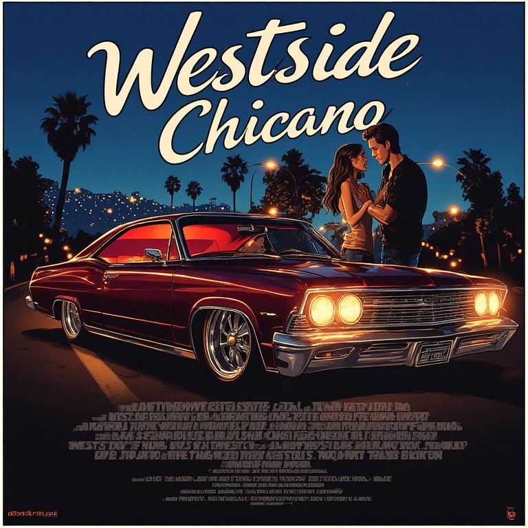 A slow-rolling West Coast / Chicano G-funk lowrider beat at ~92 BPM, deep rounded sub-bass that glides instead of punches, crisp but lazy snap snares, soft live claps, and subtle open-hat swing; high-pitched analog synth lead with long portamento bends carrying the melody, occasional sine-wave whistle accents, and a warm talkbox hook that sings the main refrain in smooth, melodic phrases; chorus vocals delivered in a NateDoggâstyle sung rapârich baritone, laid-back, soulful, effortless confidenceâstacked with wide harmonies and light chorus effect, while verses are half-spoken, half-rapped with a calm west-side drawl and reflective tone; Spanish talkbox ad-libs weave between bars and hook tailsâshort, melodic phrases like âĂłrale, â âsimĂłn, â âbarrio, â âcorazĂłn, â âfamilia, â âwest side, â âpara siempreââprocessed with subtle auto-wah and tape warmth; overall mix feels sunset-cruising, nostalgic, smooth but proud, windows down, hydraulics breathing, chrome reflecting orange sky, no aggressi