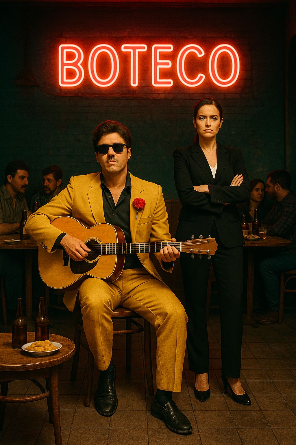 Brazilian Brega, low raw male vocal, raspy and rough voice, emotional, accordion, guitar arpeggios, soft drums, dramatic style