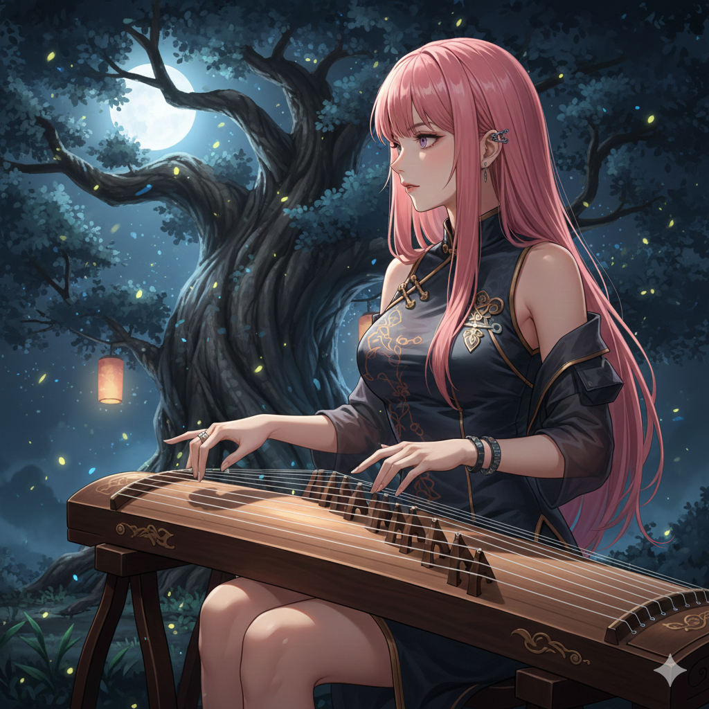 pure Guzheng solo intro, traditional Chinese string resonance, bittersweet melancholic atmosphere, weeping Guzheng, 'Chan Yin' vibrating strings, delicate pitch bends, sweeping arpeggios, fluid water-like texture, natural resonance, Female airy bittersweet soft and warm whisper-pop vocals, intricate Thai-style R&B runs and melisma, breathy delivery, Mandarin Chinese with Thai-Isan soul phrasing (Isan bounce), Neo-Soul, Jazz-fusion chord progression: A♭1/3 D♭1/3 G♭1/3 B♭m1/3 B1/3 B♭1/3 E♭m1/3 Fm1/3 Fm71/3 F71/3 E♭1/3 G♭maj7, Alternative thai pop, G Major, Fender Rhodes, Groovy rhythmic bassline, Lo-fi drums, Vinyl crackle, 85 BPM, vocal gymnastics, emotional ad-libs
