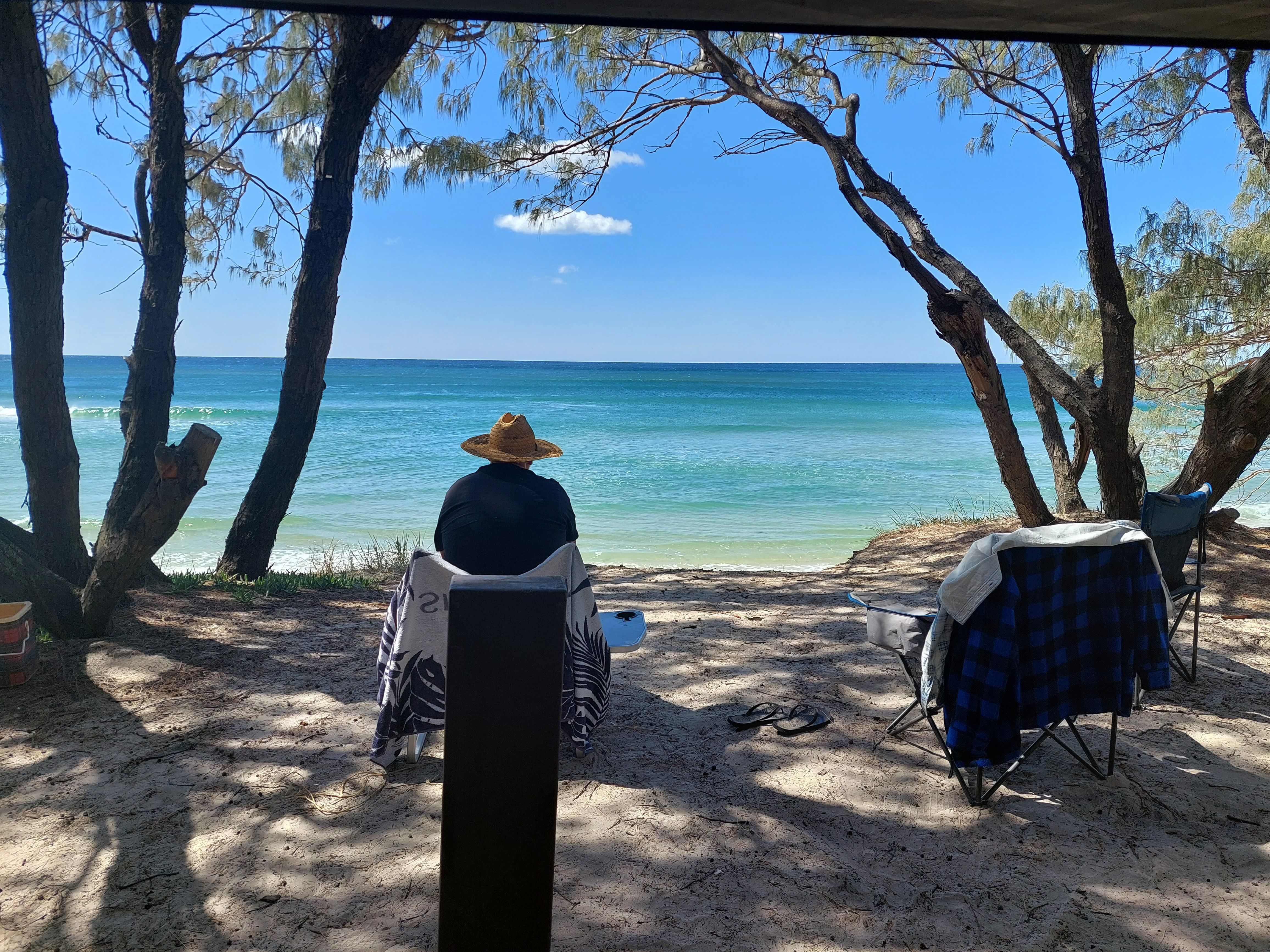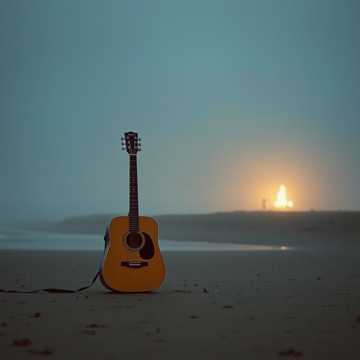 Blend radiohead with the band struggle town, Atmospheric rain Beach at night vibe, Acoustic guitar