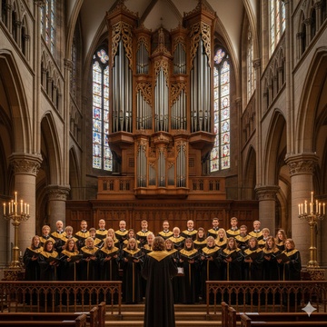 A slow tempo neo-romantic, post-minimalist polyphone choral piece with string accompaniment in a Nordic atmosphere featuring a string orchestra, pipe organ, and choir, The piece begins with a sustained, high-pitched string chord, followed by a pipe organ playing a slow, melancholic melody, darkness with low strings and soft tremolos, slowly rising in register and brightness, Gradual harmonic illumination from modal ambiguity to radiant major tonality, Expanding orchestral layers — woodwinds for dawn light, horns and trumpets for warmth and grandeur, Luminous orchestration, impressionistic colour, and a sweeping crescendo from stillness to majestic brilliance, Evokes awe, renewal, and the awakening of nature