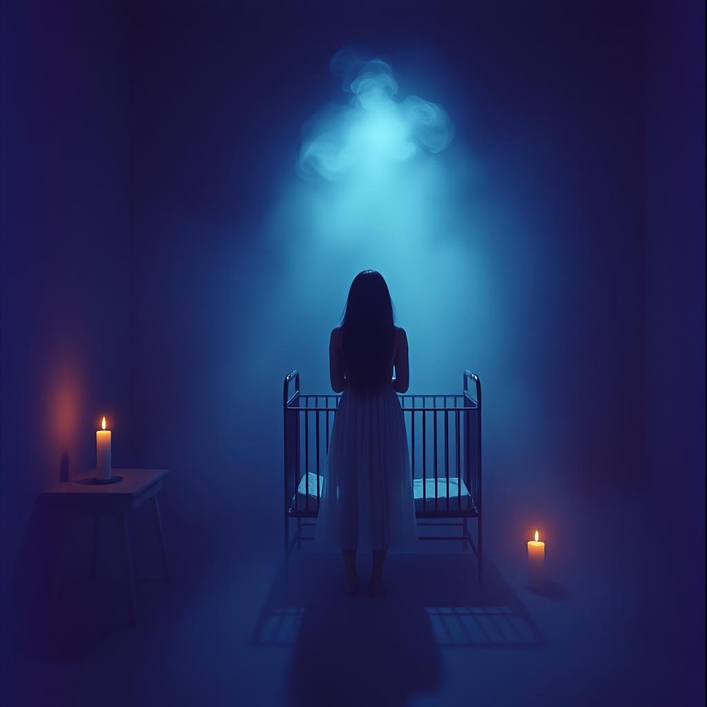 Sad dark romantic alt-pop, intimate breathy female vocals, cinematic atmospheric production, minor key melodies, echoing piano motifs, layered dark synth pads, soft heartbeat percussion, sparse ethereal music box motif evoking childhood, ambient textures, emotional vulnerability, confessional lyrics about infant loss, cinematic instrumental optional anywhere, layered vocal harmonies on bridge, fading ethereal outro, fragile and haunting, reflective and sorrowful tone, ‑EDM festival drops, ‑hyperpop, ‑aggressive trap beats, ‑heavy rock distortion, ‑metal guitars, ‑upbeat bubblegum pop, ‑country, ‑folk acoustic campfire, ‑disco, ‑funk, ‑reggae, ‑ska, ‑bright major key pop, ‑novelty/comedic songs, ‑vocal fillers, ‑humming, ‑“oohs” or “aahs”, ‑non-lyrical vocals