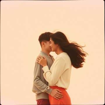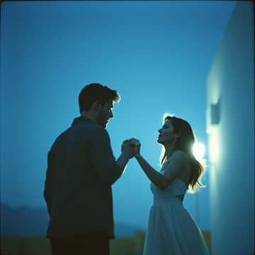 Create a romantic yet energetic cumbia duet arrangement with male and female vocals trading lines and singing together in choruses, Use a warm nylon-string guitar for rhythm with off-beat accents, bright accordion as the lead melodic instrument, and electric bass with a deep, rounded cumbia groove, Add güiro and congas for the traditional percussive drive, layered with timbales for fills, Include a steady kick and snare combo for danceable punch, Back it with subtle synth pads for atmosphere, In choruses, bring in a small brass section (trumpet and trombone) for bright, celebratory hits, Keep tempo lively and bailable (around 95–100 BPM) while maintaining romantic, heartfelt emotion, Arrange dynamics so verses feel intimate with guitar and accordion, then expand to full instrumentation in choruses, End with a festive breakdown featuring accordion, brass stabs, and percussion call-and-response to drive the dance energy