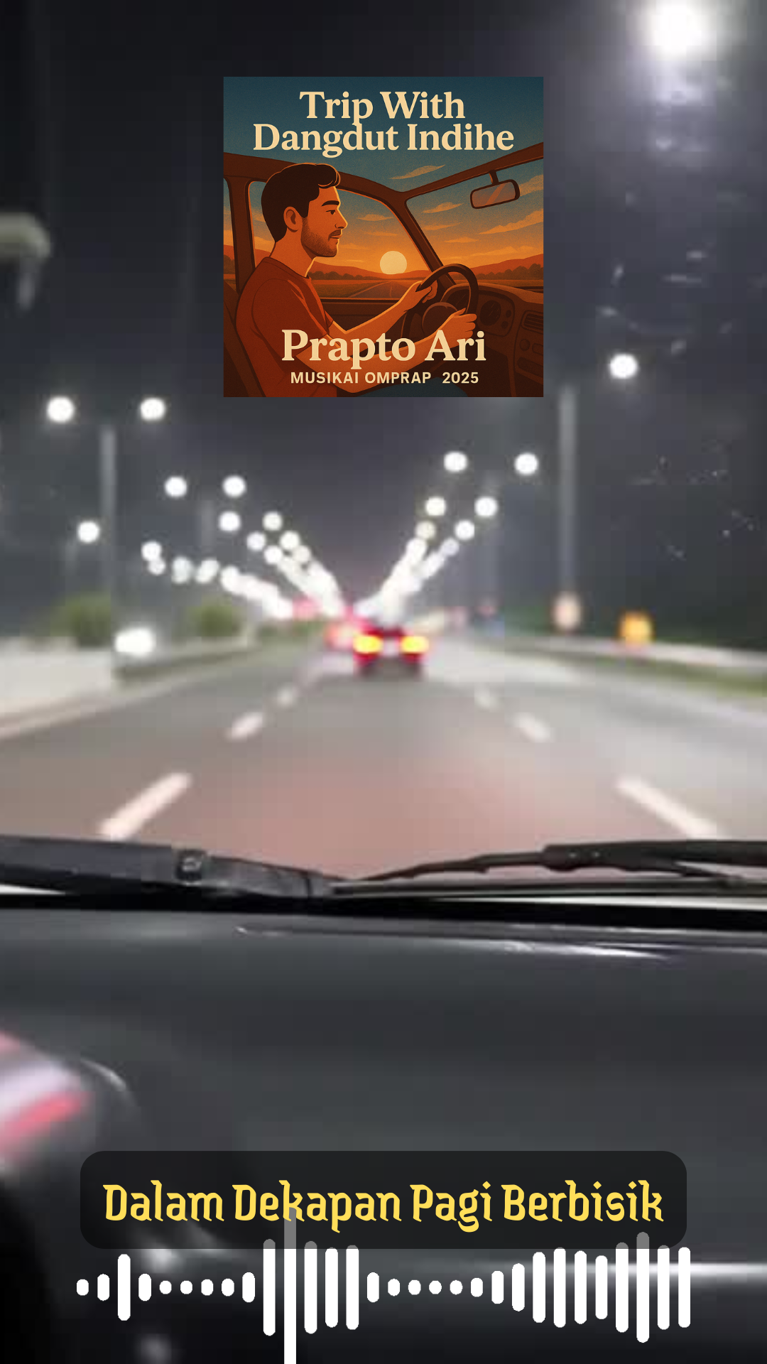Warm, soft morning trip on road atmosphere with soft dangdut rhythm blended with subtle Indian colors, Use light tabla touches, smooth percussion, warm pads, soft bass, and airy ambient textures, Emotional, intimate, human vocal delivery, Overall tone: peaceful, reflective, uplifting morning energy after a long night, Maintain the signature Musikai OmPrap aesthetic: lembut, spiritual, dan menenangkan, pro mastering & audio quality chain