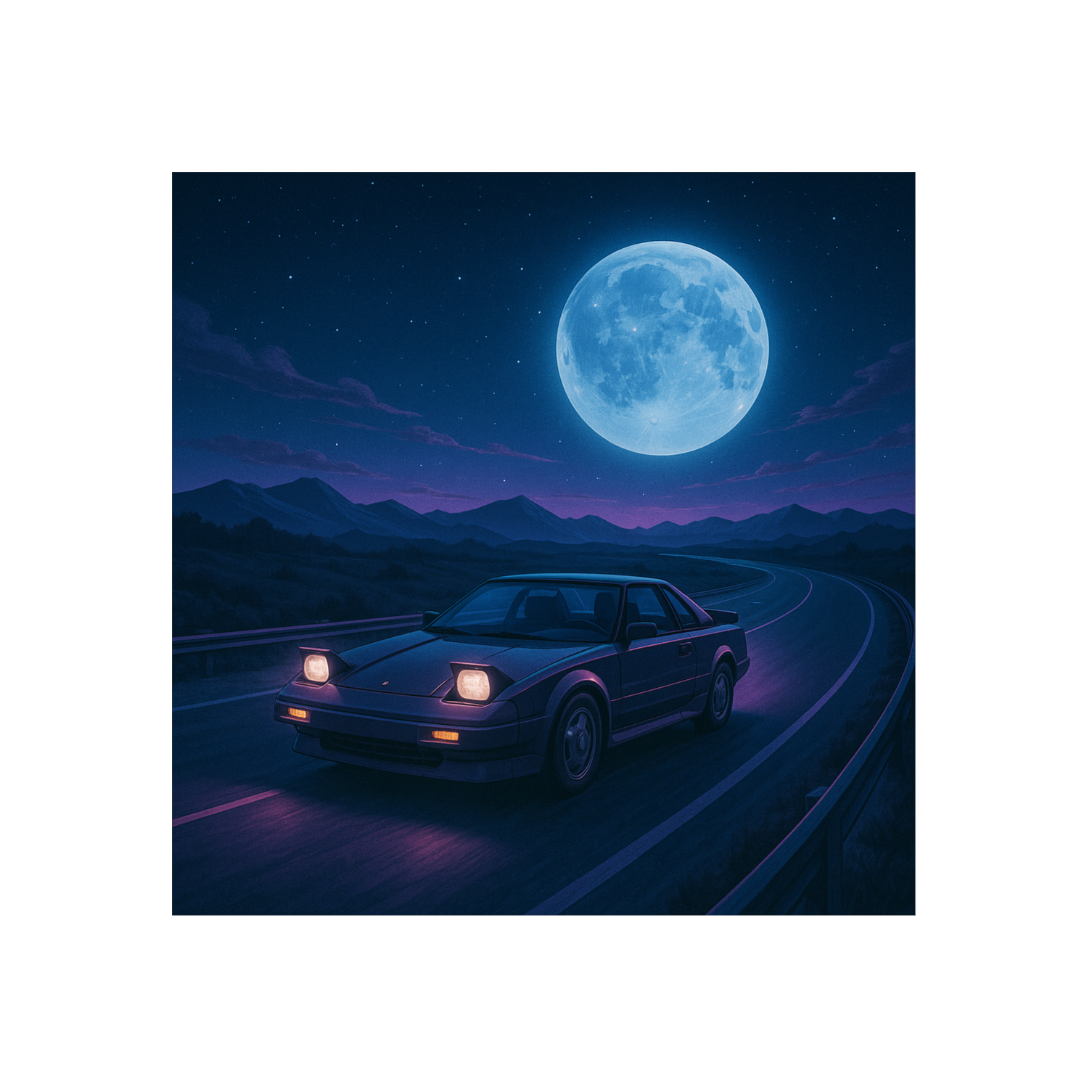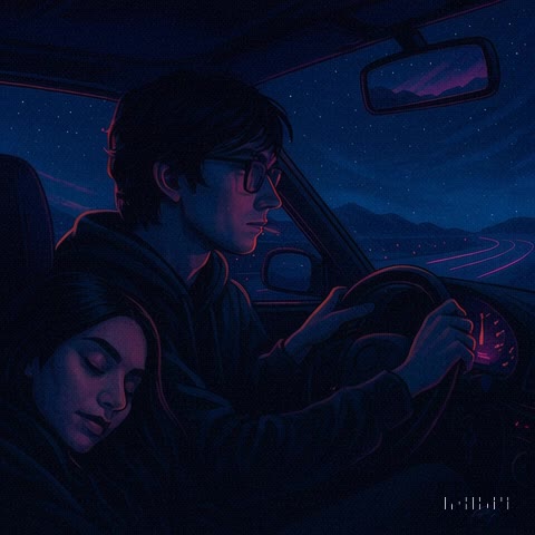 Melancholic yet hopeful, romantic and introspective, The piece should evoke the feeling of driving at night under a glowing moon, headlights cutting through soft fog, It’s about longing, love, and a desire for the journey to never end, Vocals:
