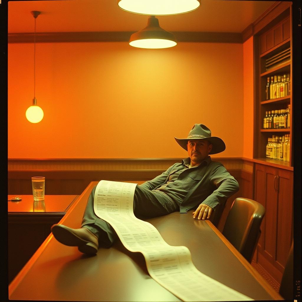 Slow-tempo outlaw western with a funky, swinging groove, Tight rhythm section: dry snare, syncopated bass, clean twangy electric guitar (no distortion), Electric steel guitar provides concise, melodic fills, Acoustic strumming adds texture, Vocals are low, dry, talk-like—barroom raw, unpolished, confident, No rock drive—just relaxed country funk