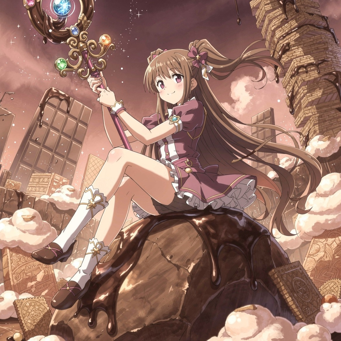 Clear anime-style J-pop vocals, expressive and bright, layered harmonies, light autotune for polish (minimal distortion or glitch effects)
