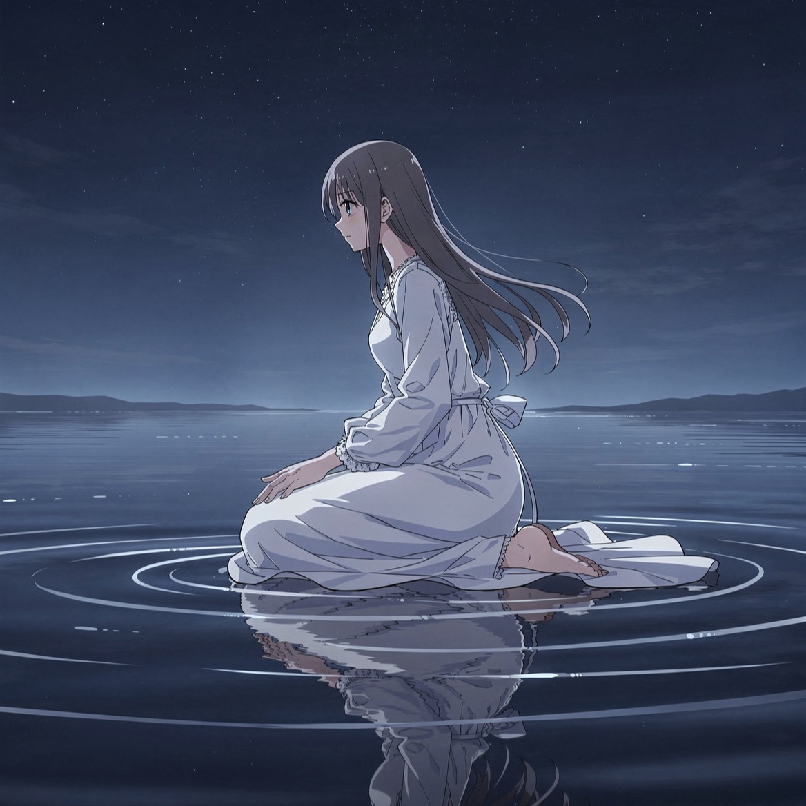 Mix between future bass and a lo-fi chillwave track with a mellow, dreamy atmosphere, Soft female vocals with a gentle, airy tone and subtle reverb, slightly melancholic but warm, Tempo around 70–85 BPM, Dusty vinyl texture, ambient night sounds, and smooth electric piano or Rhodes chords layered with light synth pads, Minimal, laid-back drum groove with soft kicks and brushed snares, Structure includes a pure instrumental intro (no vocals, setting a late-night study vibe), followed by verses and choruses with intimate vocal delivery, After each chorus, include a short instrumental bridge/interlude featuring filtered beats, ambient textures, and melodic motifs to reset the mood, Keep transitions smooth and flowing, evoking a calm, late-night focus atmosphere