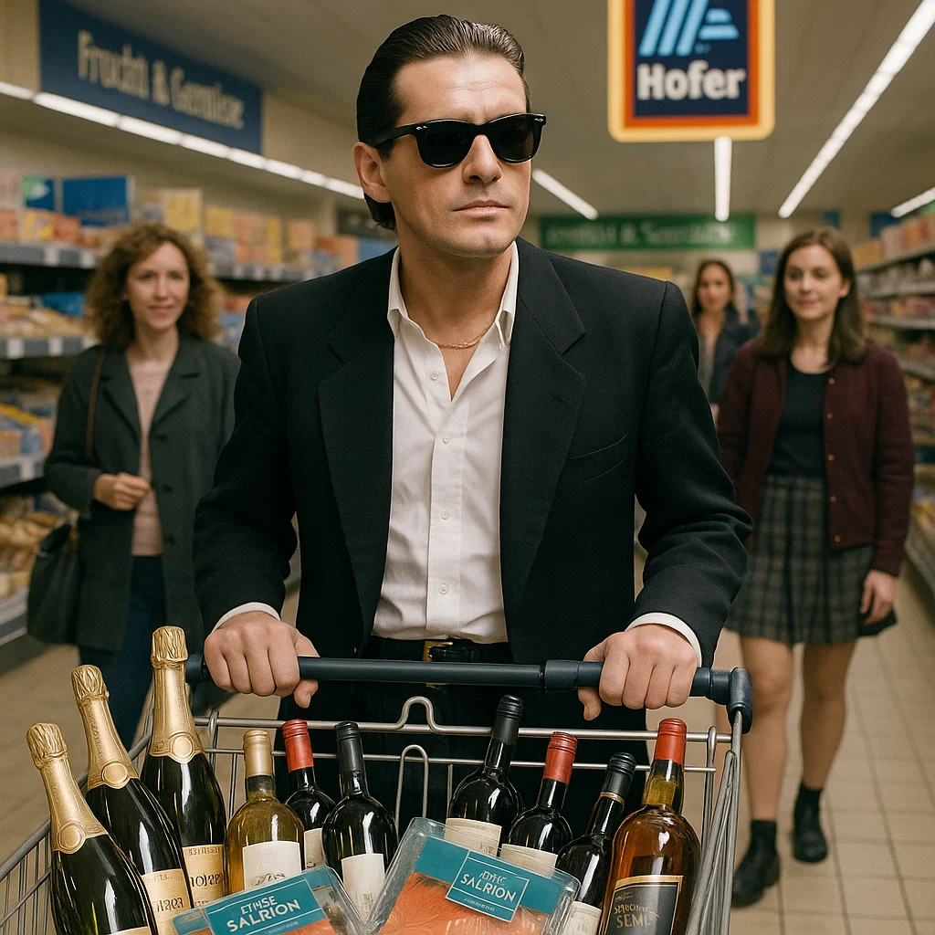 80er New Wave, Synth-Pop, Rap, Wiener Dialekt, Sprechgesang, theatralisch, charismatisch, ironisch, pulsierende Synths, funky Riffs, dramatisch, kosmopolitisch, 120–140 BPM