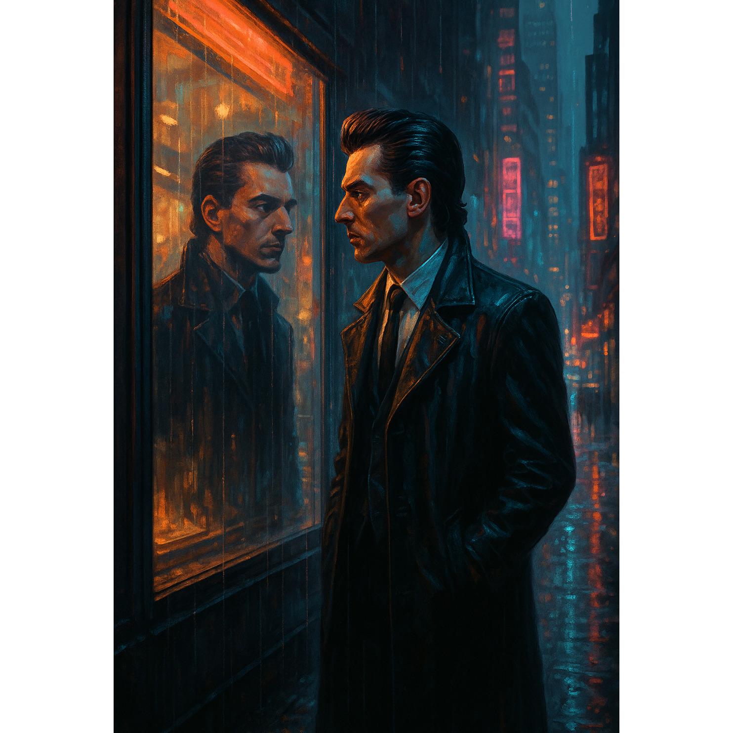 Create a dramatic 1980s European synthpop/rap song, The song is titled „Spiegelbild im Neonlicht“, Use analog synthesizers (like Juno or Oberheim), drum machines (LinnDrum-style), funky basslines, and orchestral stabs for added drama, The vocal should be in German with an Austrian accent, half-spoken, half-sung, delivered in a theatrical, self-confident, poetic tone, The mood is urban, mysterious and introspective – with themes of identity, alienation and the search for truth in a neon-lit city, The performance should sound bold, emotional, and a bit eccentric, Lyrics are original and written in a poetic, metaphorical style