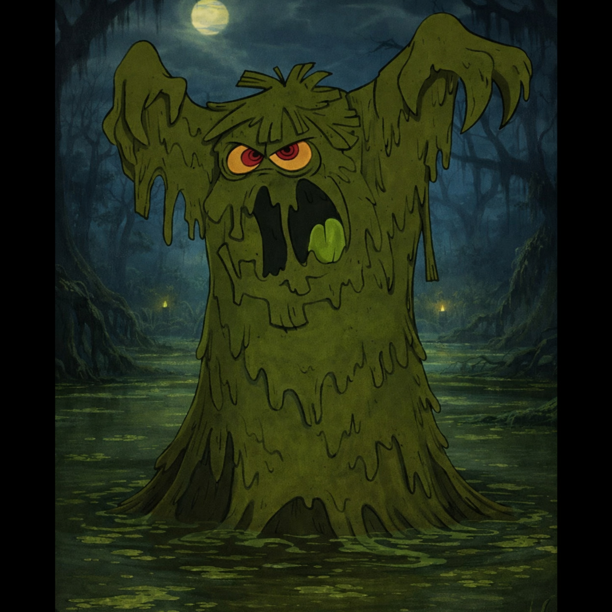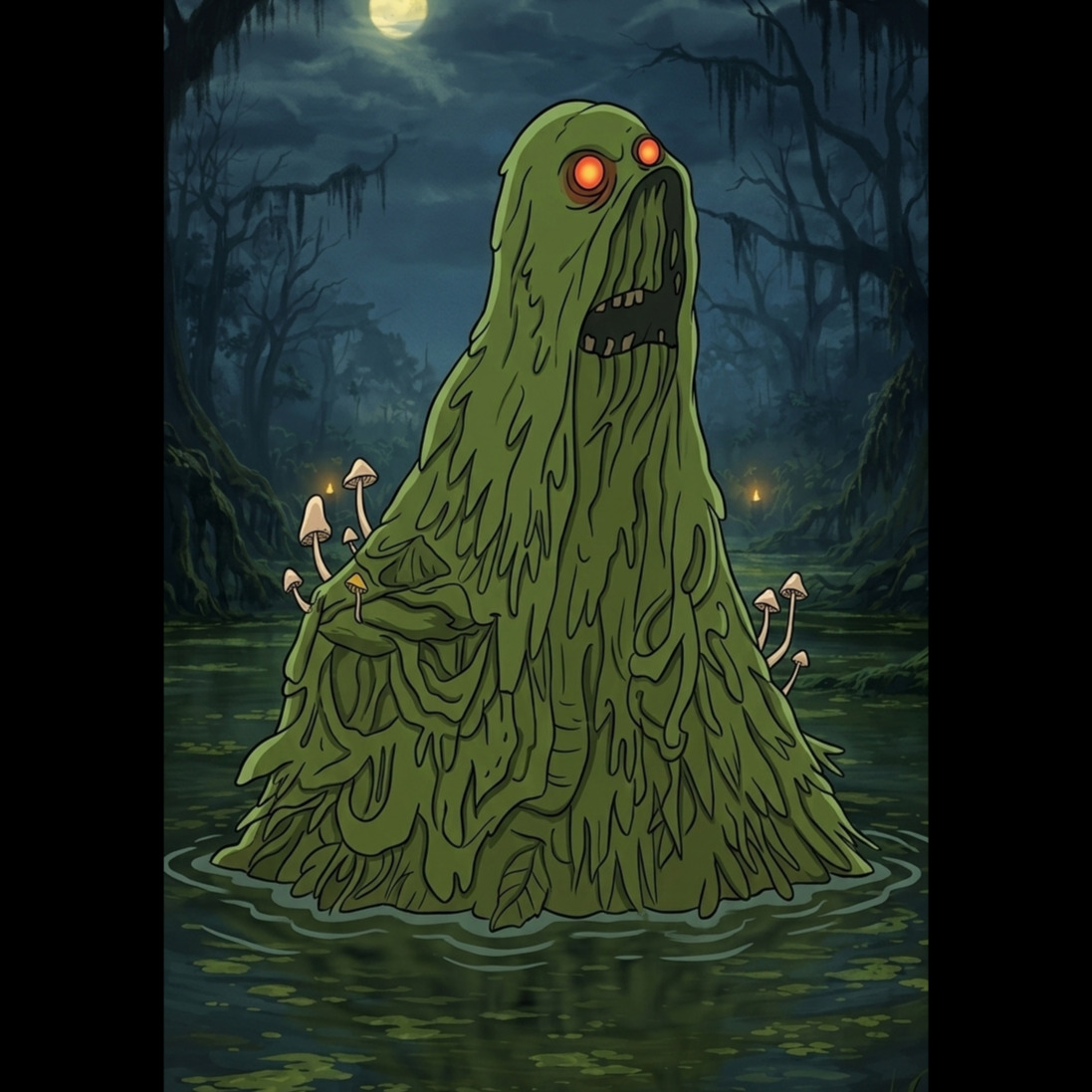 Swamp dubstep, riddim, wonky bass music, 140 bpm, deep sub bass, reggae skanky guitar chops, squelchy synthesizer, wet sound design, psychedelic atmosphere, heavy half-time groove, syncopated percussion, vocal sample textures