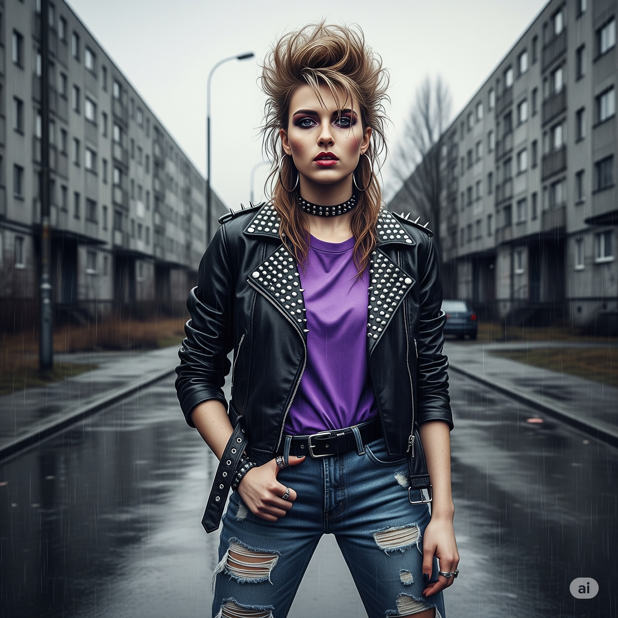 Vocals: Lead: Strong, Edgy Female Voice (confident and rebellious), Backing: Simple harmonies on the chorus, Structure: Use the provided Polish lyrics and their musical annotations for structure, tempo, and dynamic shifts to create a powerful, anthemic rock song