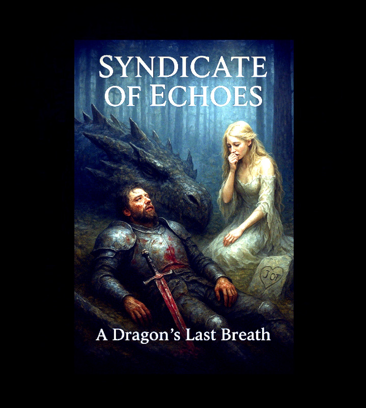 Epic dark fantasy ballad with medieval folk influences, slow to mid-tempo (70–80 BPM), featuring cinematic orchestration, acoustic guitar, deep drums, and haunting strings, Male lead vocal with emotional, storytelling tone, Atmosphere should be mystical and dramatic, with moments of tenderness and tension, The music should blend dark ambient textures with medieval melodies, evoking knights, dragons, and ancient curses, Strong, heartfelt choruses with soaring strings and powerful percussion, Suitable for a tragic love story set in a fantasy kingdom