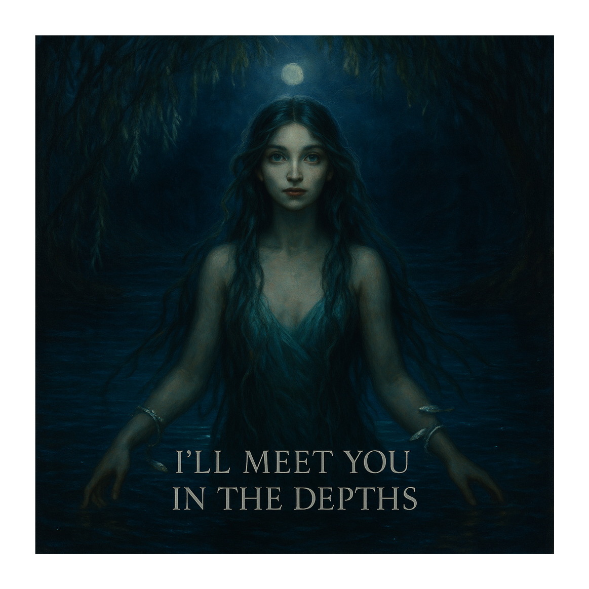 Hybrid of indie-folk and ambient electronica in 6/8 waltz; harrowing harp and bubbling dulcimer blended with synth pads, lo-fi drums, and intimate vocals, Rippling delay textures and filtered water sounds; tone is mystical, hypnotic, and luminous, like sinking into a dream of lament and watery promises