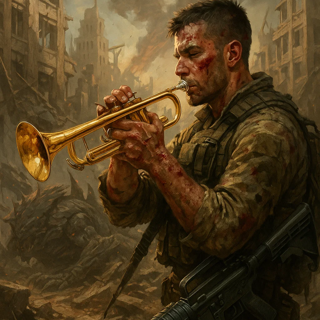 This is an instrumental track only, No vocals, Pure instrumental composition, Trumpet solo only, marching band, cinematic, orchestral