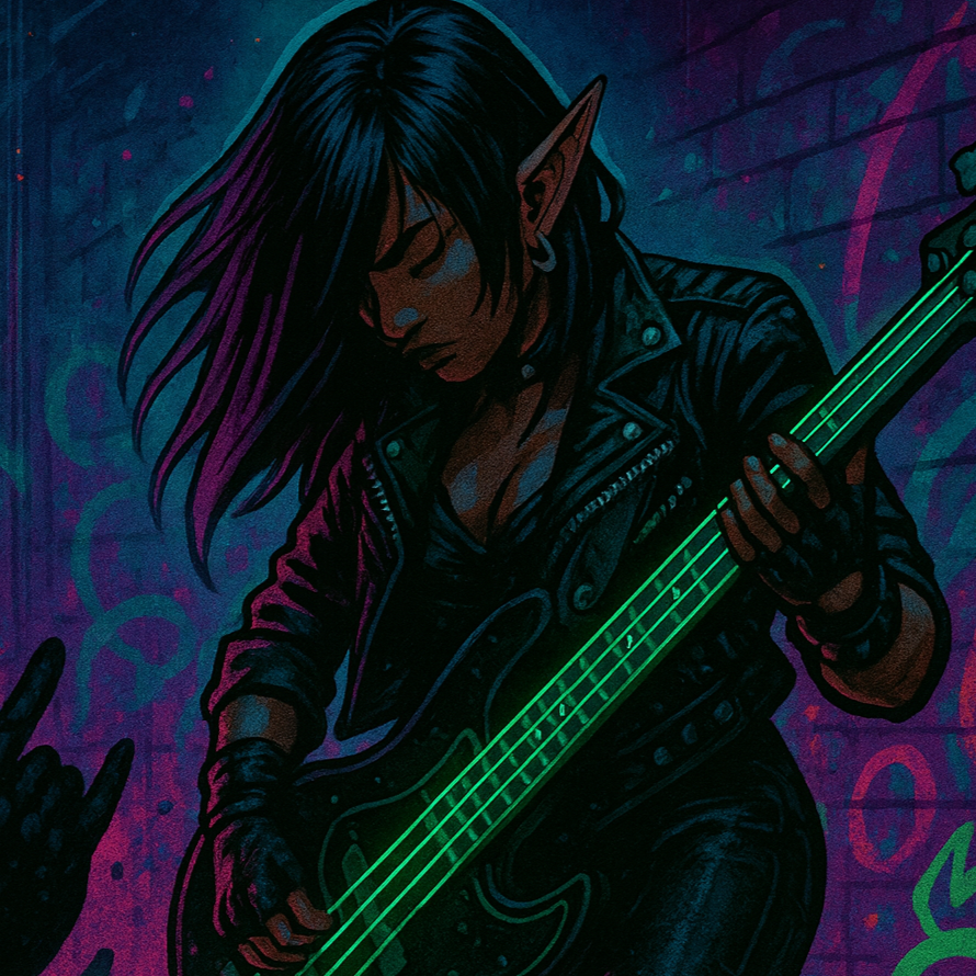 An immersive and obscure Psychedelic Cybergrunge track, The foundation is a powerful, heavy, and distorted drop-tuned guitar riff and a deep, melodic, fuzz-laden bassline, The drums are complex, tribal-infused, and live-sounding, with prominent cymbals and tom work, This raw, organic core is infused with ethereal, swirling synth pads, glitching electronic textures, and subtle, hallucinatory sound effects that evoke a dreamlike state, The lead male vocal is a multi-octave baritone, shifting from a low, hypnotic growl to a soaring, shamanistic wail, delivering poetic, highly obscure lyrics with double meanings