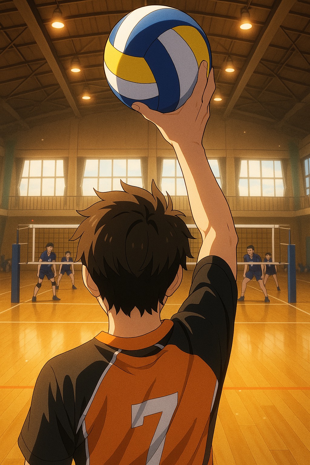 A fast-paced, emotional Japanese rock band song with bright electric guitar chords, energetic drums, and passionate female vocals, The theme is youth, teamwork, and the burning hope within a high school volleyball club, The intro starts with vocals over a solo bassline, followed by the full band kicking in, The music features expressive instrumental interludes and driving choruses filled with determination and momentum, The Chorus Final is the climax of the song â it should be performed with the highest intensity, with full instrumentation, soaring guitar riffs, and emotional vocal delivery, Unlike a bridge or a build-up section, this Final Chorus must not be quiet or minimal; it is the emotional and musical peak of the song, End the song with a soft but hopeful outro featuring gentle guitar tones, echoing the energy of youth and new beginnings, Let the final moments leave a lasting emotional impression â triumphant, heartfelt, and full of light